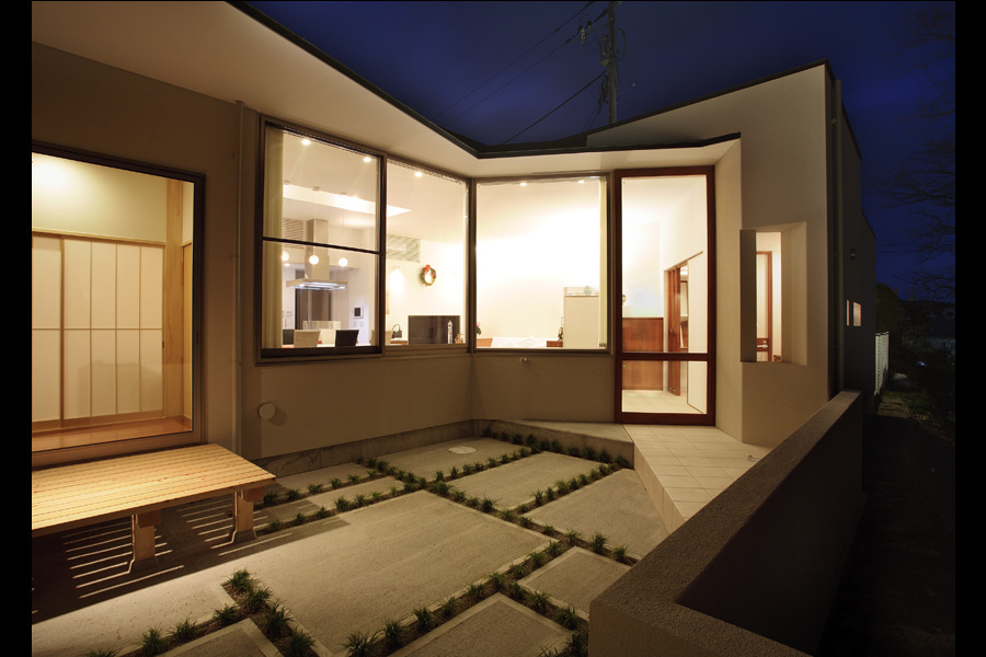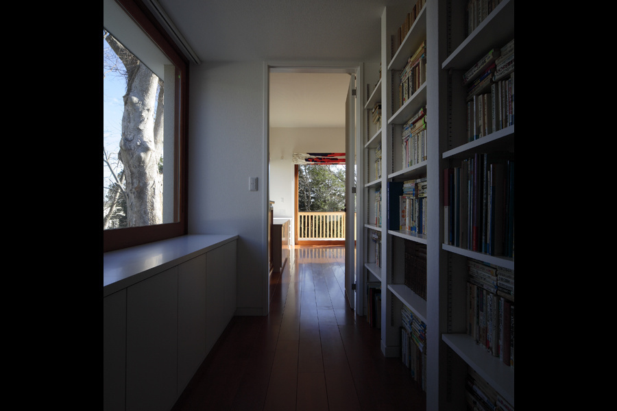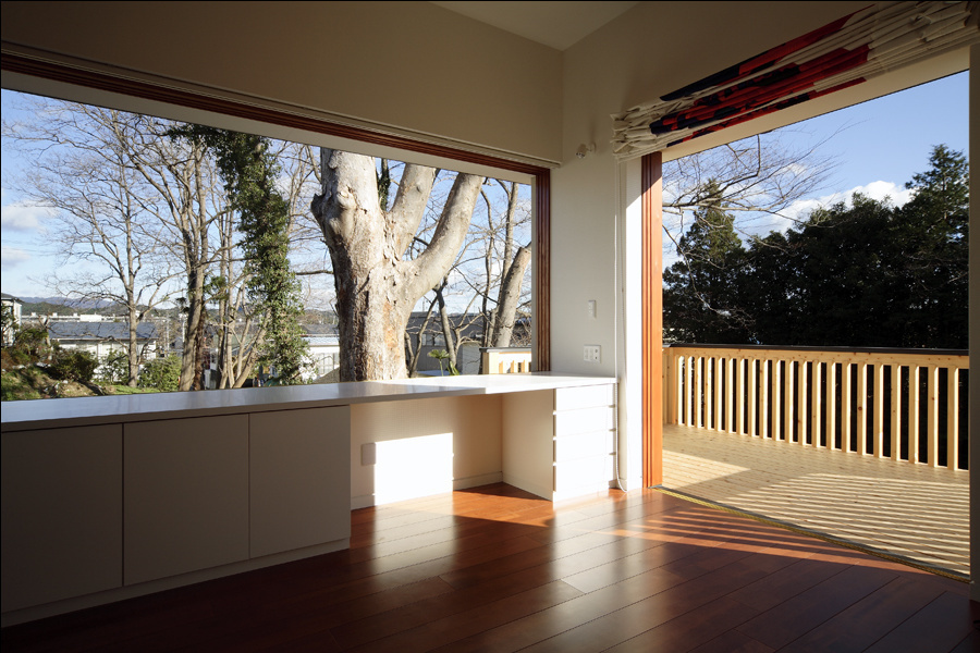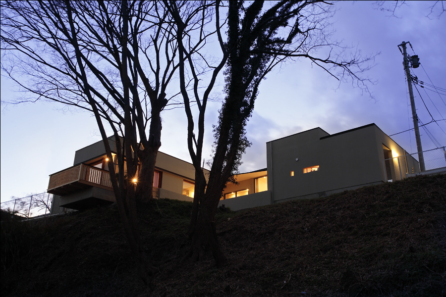 六間門の旧営林跡地に建つ家です。土地はL字型に変形し、東側は道路まで10mの斜面。その斜面に大きなケヤキがありました。