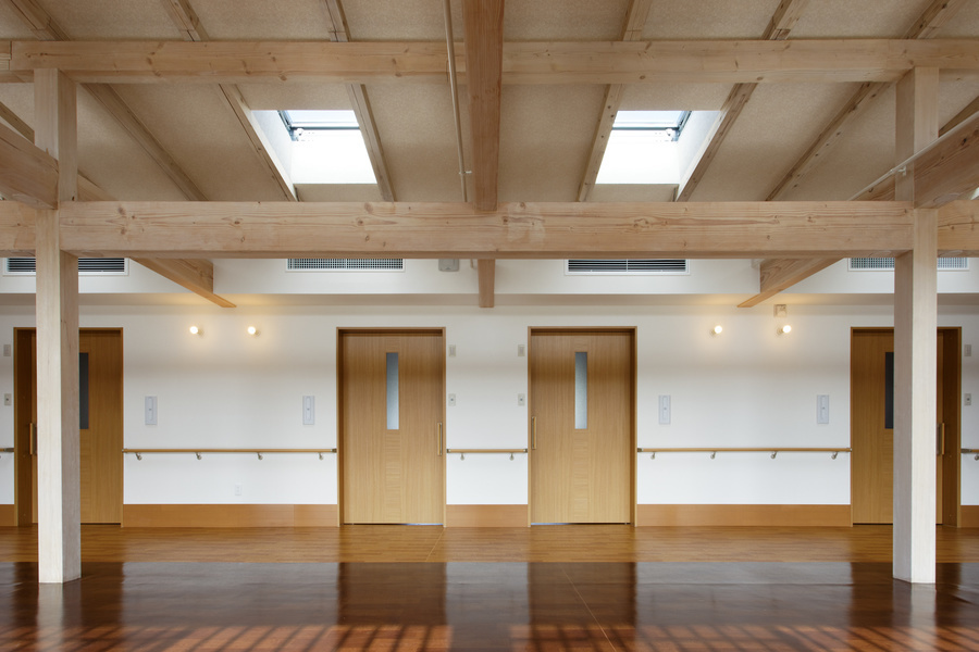 利用される方々の火災等の安全を考慮し、平屋建て。全館スプリンクラーとし、耐火建築に劣らない安全性となっています。
